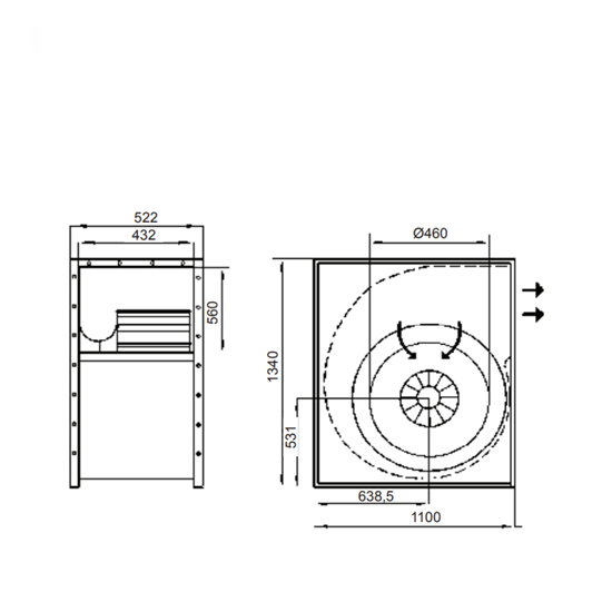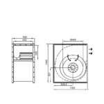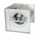 • Ventilatorwiel met achterwaarts gebogen schoepen, vervaardigd uit verzinkt plaatstaal of aluminium; afhankelijk van het type gestanst of gelast